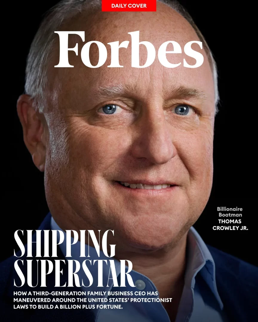 Khi cha qua đời năm 1994, Thomas B. Crowley Jr. mới 27 tuổi, là cử nhân Đại học Washington và đặc biệt đam mê với máy tính. Trong ba thập niên kể từ đó, ông đã vượt qua cái gọi là “lời nguyền thế hệ thứ ba” (không ai giàu ba họ – tức từ giàu sang đến trắng tay chỉ sau ba đời) bằng nhiều hành động quyết đoán: đối đầu với công đoàn bốc xếp, dừng hoạt động tuyến phà ở vịnh San Francisco vào năm 1997, và nhanh chóng bán đứt mảng vận tải Nam Mỹ sau khi các đàm phán thương mại quốc tế gặp trục trặc. Ông cũng tận dụng lợi thế từ Đạo luật Jones để giành được các hợp đồng với Cơ quan Phát triển Quốc tế Hoa Kỳ (USAID), chuyên quản lý các lô hàng cứu trợ khẩn cấp như thuốc trị Ebola đến Liberia hay gà đông lạnh đến Cuba. May mắn cũng góp phần. Hợp đồng lớn cuối cùng của Crowley với USAID kết thúc vào năm ngoái, ngay trước khi chính quyền Trump giải thể cơ quan này và phần lớn các chương trình viện trợ của họ.