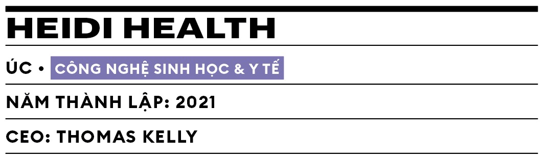 Heidi Health cung cấp phần mềm ghi chép y khoa tích hợp AI có tên là Heidi, nhằm hỗ trợ các bác sĩ trong việc ghi chép và lập hồ sơ lâm sàng. Phần mềm của công ty (trước đây có tên là Oscer) có khả năng tạo nhanh các ghi chú lâm sàng và lịch sử ca bệnh dựa trên các cuộc tham vấn với bệnh nhân. Hiện đang hoạt động tại Úc và Anh, các đối tác của Heidi Health bao gồm Modality Partnership thuộc Dịch vụ Y tế Quốc gia (NHS). Mạng lưới này làm việc với hơn 360 bác sĩ đa khoa. Startup có trụ sở tại Melbourne này do một bác sĩ điều hành, đã huy động được 26,5 triệu AUD (tương đương 17,2 triệu USD) trong vòng gọi vốn vào tháng ba vừa qua, với sự tham gia của các nhà đầu tư như Headline (Mỹ), Local Globe (Anh) và Blackbird.