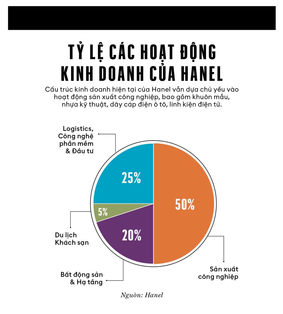 Trong cấu trúc kinh doanh hiện tại, hoạt động sản xuất công nghiệp, bao gồm khuôn mẫu, nhựa kỹ thuật, dây cáp điện ô tô, linh kiện điện tử đóng góp khoảng 50% doanh thu toàn công ty. Mảng bất động sản khu công nghiệp và hạ tầng chiếm khoảng 20%, du lịch khách sạn 5%, còn lại đến từ dịch vụ logistics, công nghệ phần mềm và đầu tư.