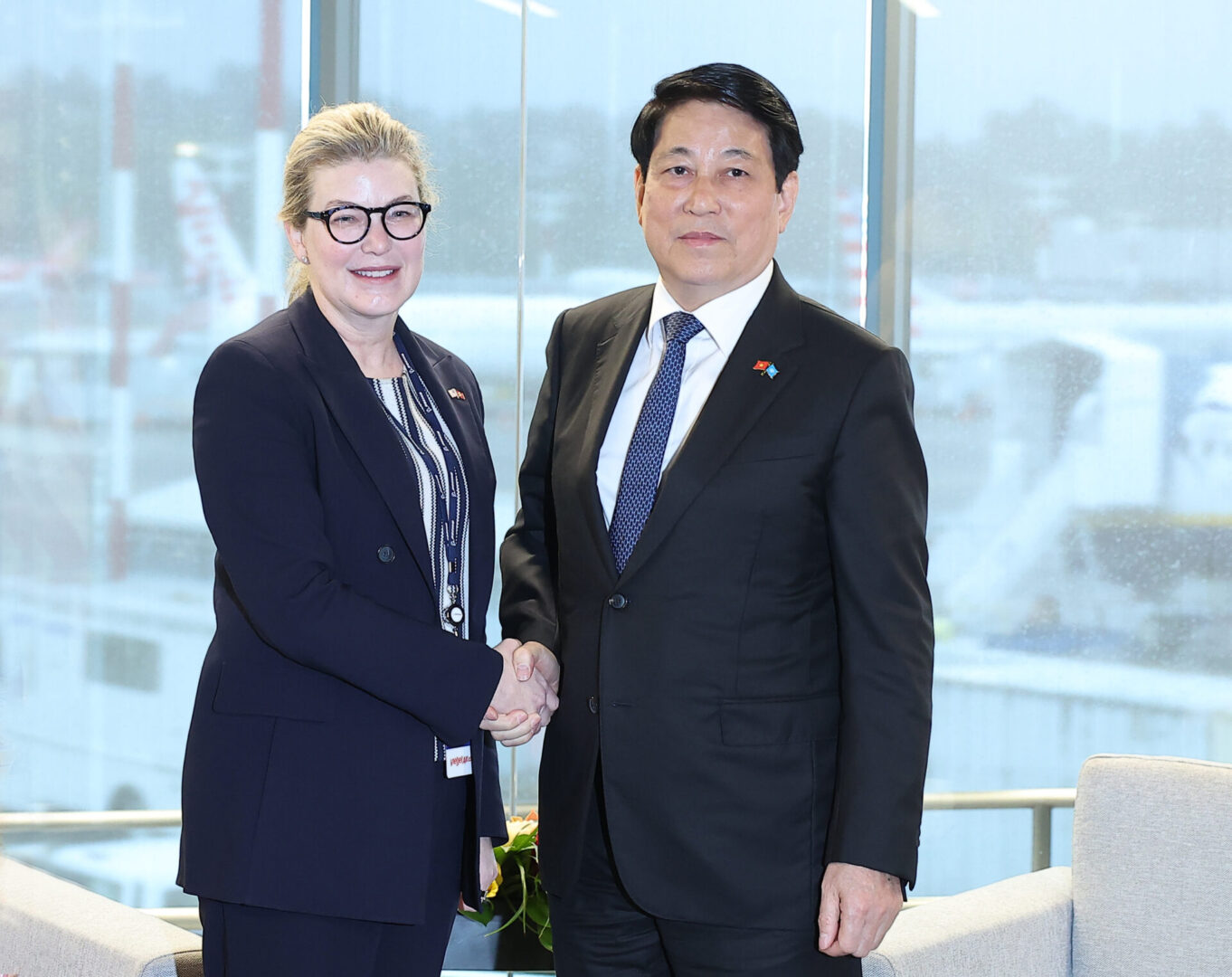 Seattle, Hoa Kỳ – 21/9/2025 – Chủ tịch nước Việt Nam Lương Cường đã có buổi tiếp bà Stephanie Pope – Chủ tịch kiêm Tổng giám đốc Tập đoàn máy bay thương mại Boeing tại trụ sở Boeing. Cùng tham dự có Tiến sĩ Nguyễn Thị Phương Thảo – Chủ tịch Vietjet và đoàn công tác.