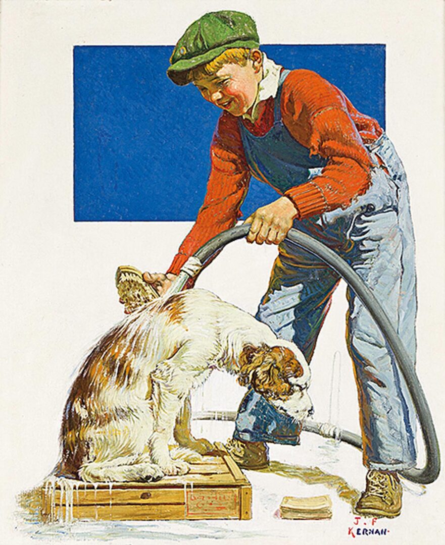 Thị trường nghệ thuật đang dần rời xa những gam màu vui tươi, hóm hỉnh mà Kernan theo đuổi, để hướng tới các tác phẩm táo bạo và phản ánh xã hội nhiều hơn. Bức Dog Bath – từng xuất hiện trên bìa Saturday Evening Post năm 1934 – được bán với giá 52.500 USD vào tháng 12.2024, có lẽ là nốt thăng cuối cùng trong hành trình sáng tác của ông.