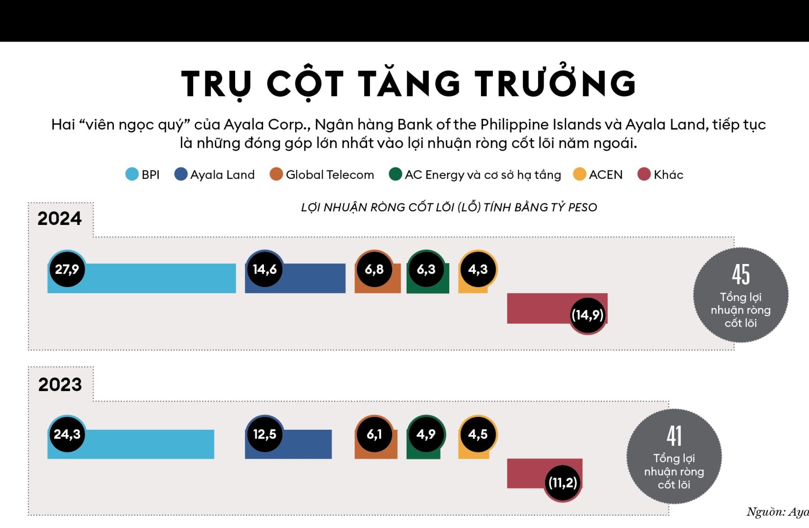Suốt ba thập niên qua, cha của Mariana – ông Jaime Augusto cùng chú ruột Fernando Zobel de Ayala – đã chèo lái con thuyền Ayala Corp., không chỉ giữ vững hai trụ cột ngân hàng và bất động sản mà còn mở rộng sang viễn thông, tiện ích và gần đây là giáo dục cùng chăm sóc sức khỏe. Dẫu vậy, BPI và Ayala Land vẫn là nguồn thu chính, đóng góp gần 95% lợi nhuận cốt lõi 45 tỷ peso của năm 2024.