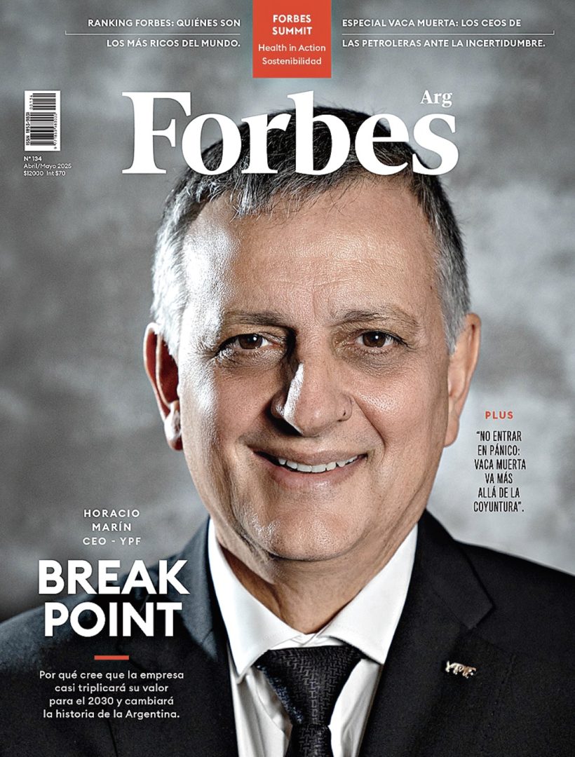 Trang bìa mới nhất của Forbes Argentina giới thiệu Horacio Daniel Marín, giám đốc điều hành Công ty Dầu khí YPF S.A., doanh nghiệp niêm yết trên Sàn giao dịch Chứng khoán New York và hiện do Chính phủ Argentina nắm giữ phần lớn cổ phần. Marín chia sẻ về các kế hoạch tăng trưởng mà ông hy vọng sẽ giúp giá trị thị trường của công ty tăng gấp ba lần, từ mức 12,7 tỷ USD hiện tại trong vòng 5 năm tới. Tuy nhiên, mọi kế hoạch này đã bị gián đoạn khi một thẩm phán Mỹ ra lệnh vào tháng 6.2025 rằng Argentina phải từ bỏ 51% cổ phần của mình tại YPF, nhằm thanh toán một phần phán quyết trị giá 16 tỷ USD mà quốc gia này nợ các nhà đầu tư cũ sau khi tổng thống Argentina lúc bấy giờ quốc hữu hóa YPF vào năm 2012. Tổng thống hiện tại của Argentina, Javier Milei, đã lên kế hoạch kháng cáo quyết định này.